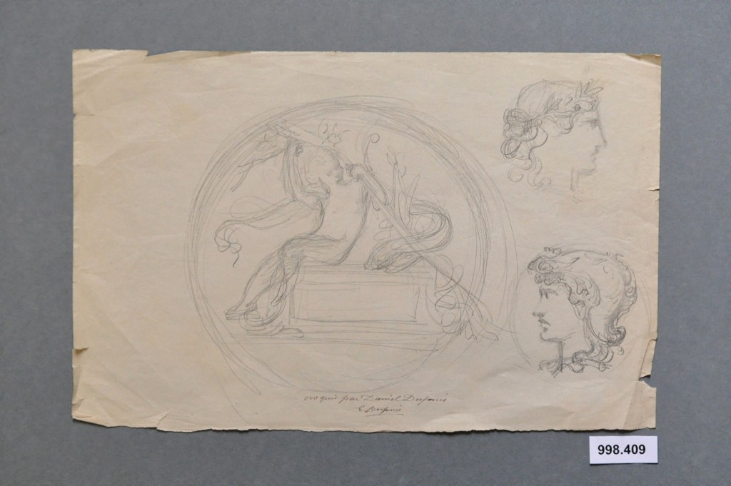 No se los menciona en la biografía y catálogo de la obra de Daniel Dupuis por Fernand Mazerolle, publicada en 1898. El artista donó en vida la colección de sus obras, que se conserva en el Museo de Bellas Artes del Castillo de Blois, en su ciudad natal. Tampoco se encontró en esos archivos ninguna mención a los medallones, ni correspondencia con Ballu o la comisión argentina. Julie Brossier, responsable de la documentación, tuvo la amabilidad de enviarme dos dibujos del escultor que tal vez fueran bosquejos para estas piezas.
