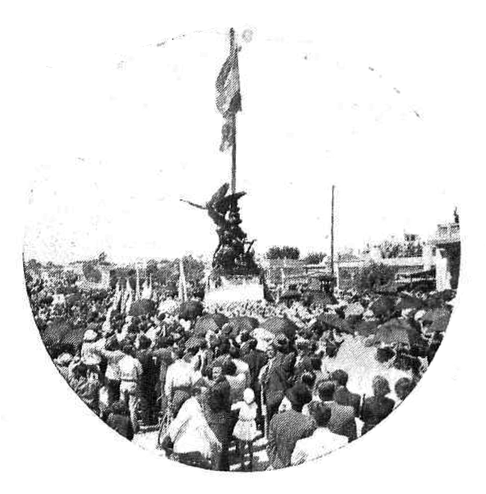 La Agricultura, representada por una bella joven sentada al pie del mástil y apenas cubierta con un paño, su mano derecha apoyada en un arado. Espigas de trigo y un escudo de la república completan el grupo.