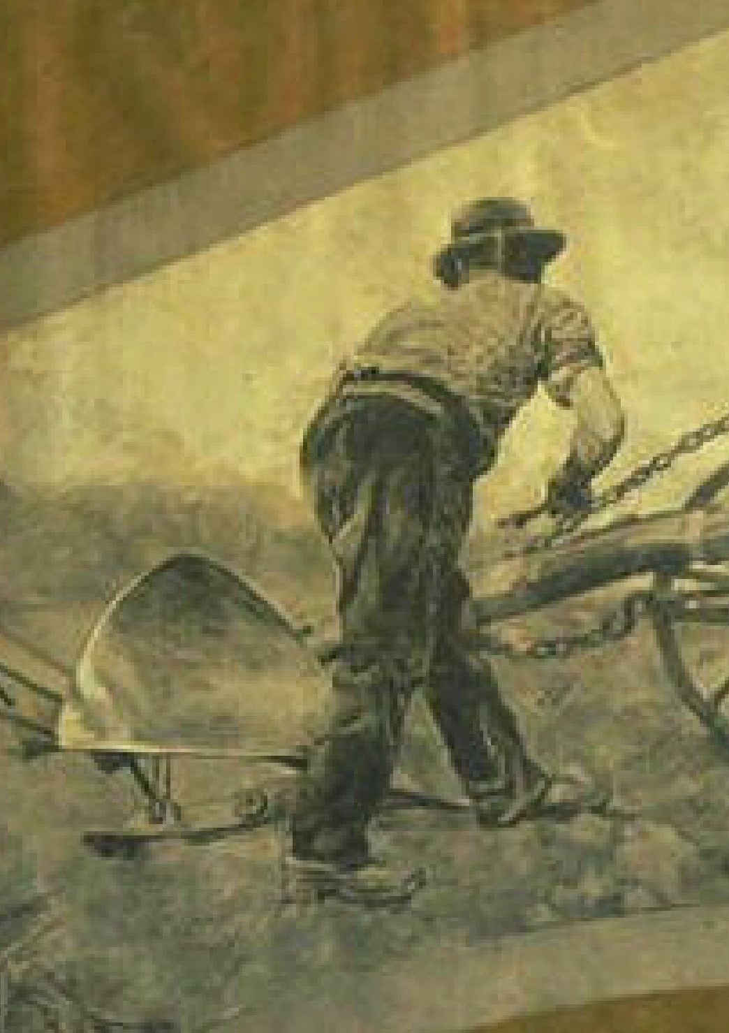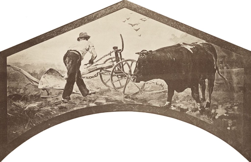 Se ve que había prácticamente desaparecido lo pintado en el lado derecho; el pelaje del buey, salpicado de manchas claras y el cielo y las aves, el arado y pastizal del lado izquierdo parecen retocados, todo esto seguramente debido al daño que sufriera el cartón: Waldorp tuvo almacenadas a esta pieza y a su pendant durante seis años en condiciones precarias, más el tiempo que habían pasado en depósitos entre 1891 y 1893. Ese otro cartón, que mostraba un pastor en la pampa, se habría deteriorado tanto que aparentemente Schiaffino nunca lo expuso.