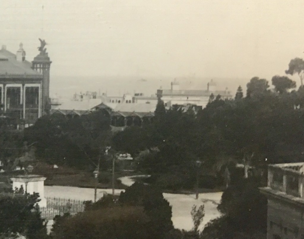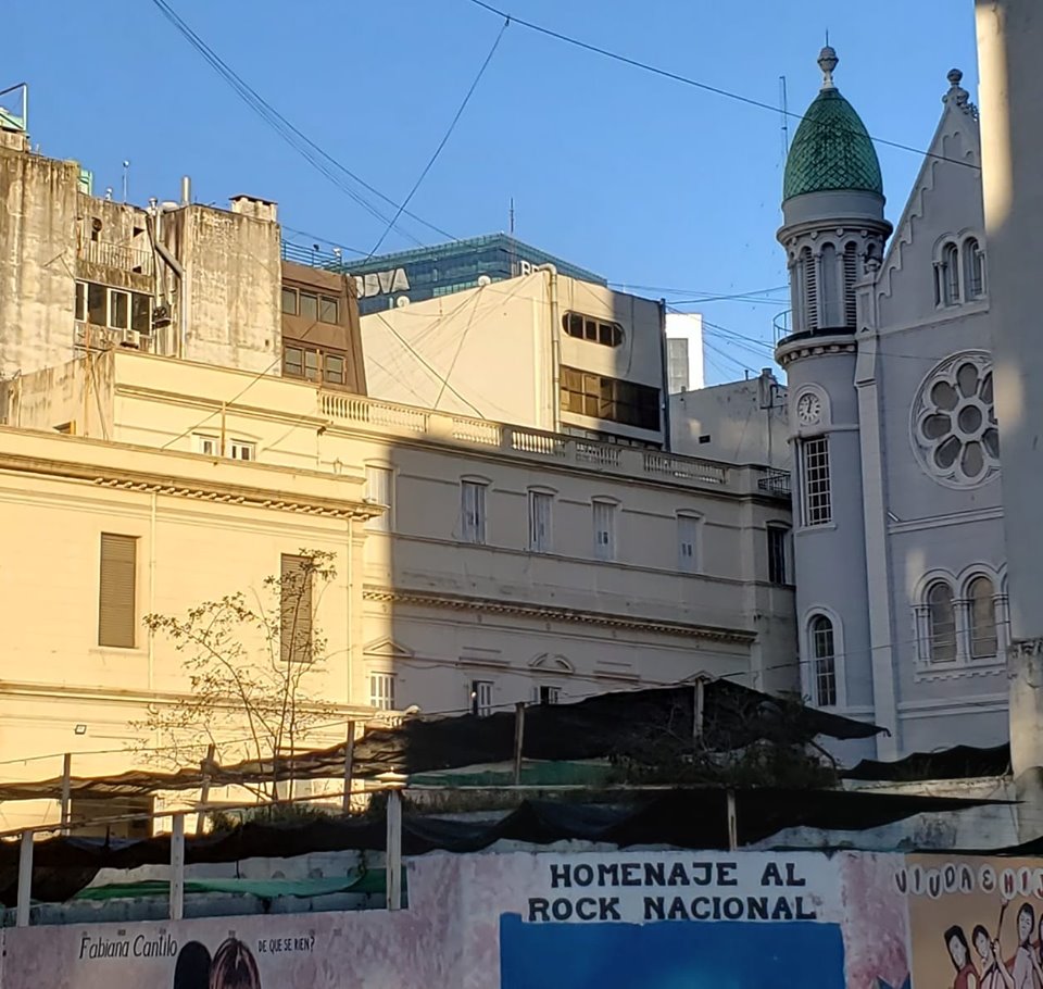 Más visible en otra de 1897, detrás de los árboles, tomada desde un piso alto de un edificio en la esquina de Esmeralda y Santa Fe.