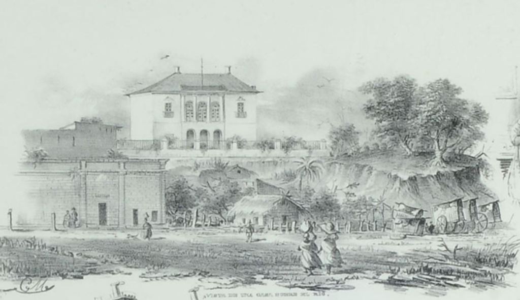 Estaba en la manzana donde hoy se levanta el Santísimo. Desde la costa se la ve al borde de la barranca en una litografía de Carlos Morel de 1845, con la leyenda Vista de una casa sobre el río.