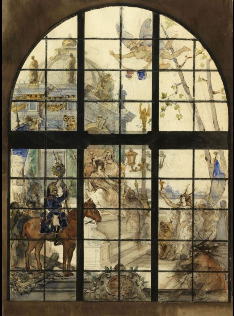 No se conoce el destino del cartón, ni si existió; Oudinot era pintor, no le habría sido difícil crear el vitral en base a estos bosquejos.