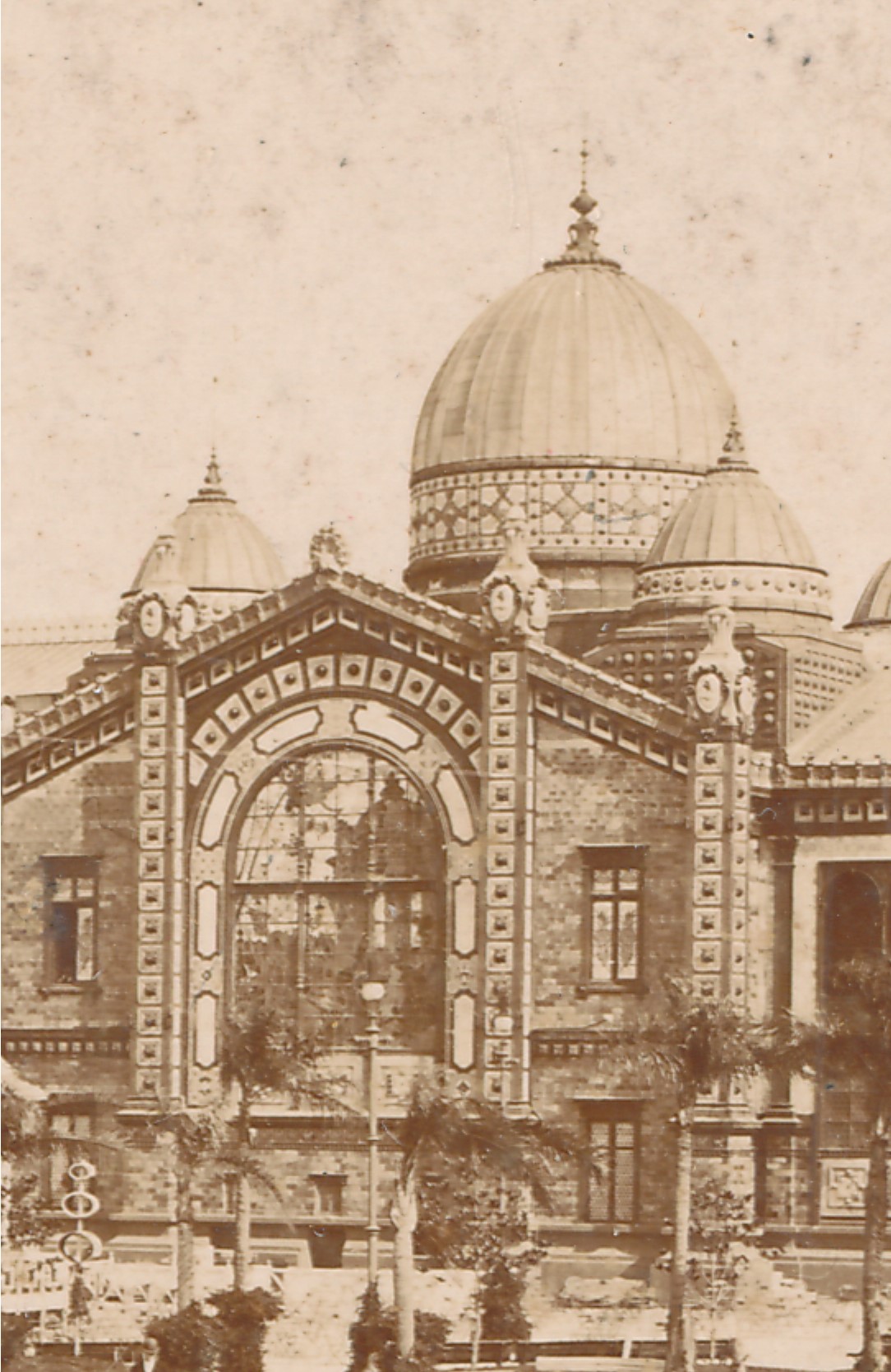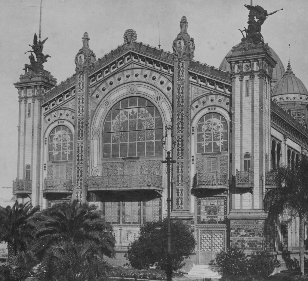 En esta foto del edificio ya instalado en Buenos Aires, de alrededor de 1895, se ve la fachada trasera y el gran vitral – si así lucía de día, puede imaginarse cómo sería de noche, con el interior iluminado.