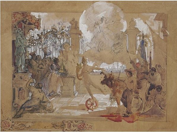 Siempre según Alcorta, por su cartón Toché percibió la suma de 6.000 francos, lo que lo ubicó entre los mejor remunerados de los pintores que trabajaron en el Pabellón.