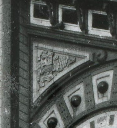 Las fotos son de muy baja definición, pero este motivo remite al que decoraba el centro de las hojas de la gran puerta de entrada.