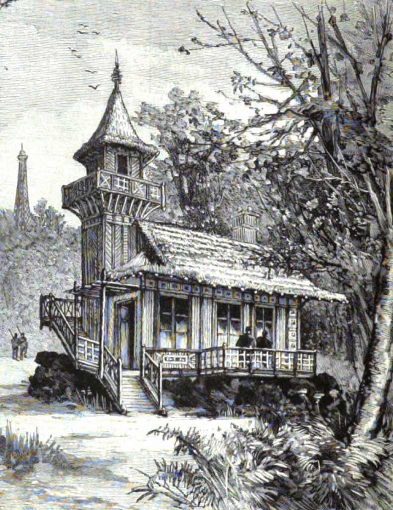 Veía el «sombrerito» en el techo, pero pensaba que era un ventilete, agregado cuando la mudanza. Sin embargo, no era al chalet de Bieckert sino otro, muy parecido y tal vez, también debido a Prunières, instalado para la Exposición Vinícola Italiana, realizada en el Pabellón en mayo de 1896.