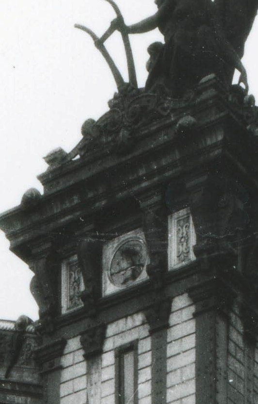 Existen varias, de fuentes no identificadas. La primera es un dibujo preliminar del proyecto, lo que se comprueba por varios detalles como la ausencia del sol dorado coronando la cúpula principal (aquí, una bandera), los mosaicos triangulares en la fachada en vez de los más amplios definitivos, un toldo en el balcón lateral, los bosquejos de los grupos escultóricos, diferentes a los finales, etc.