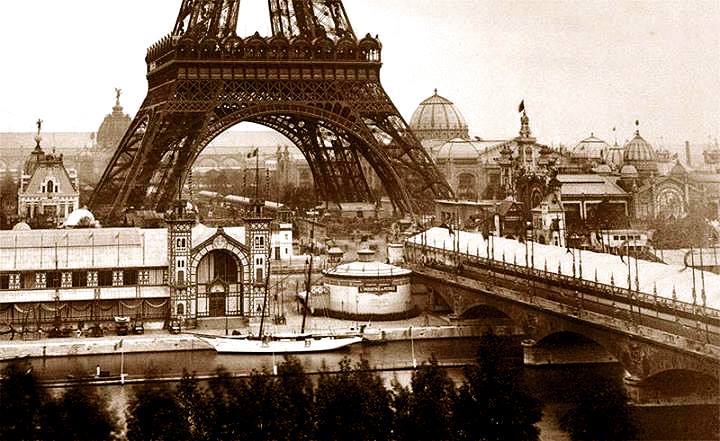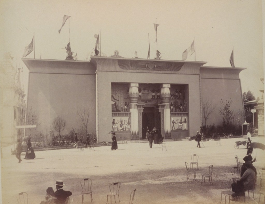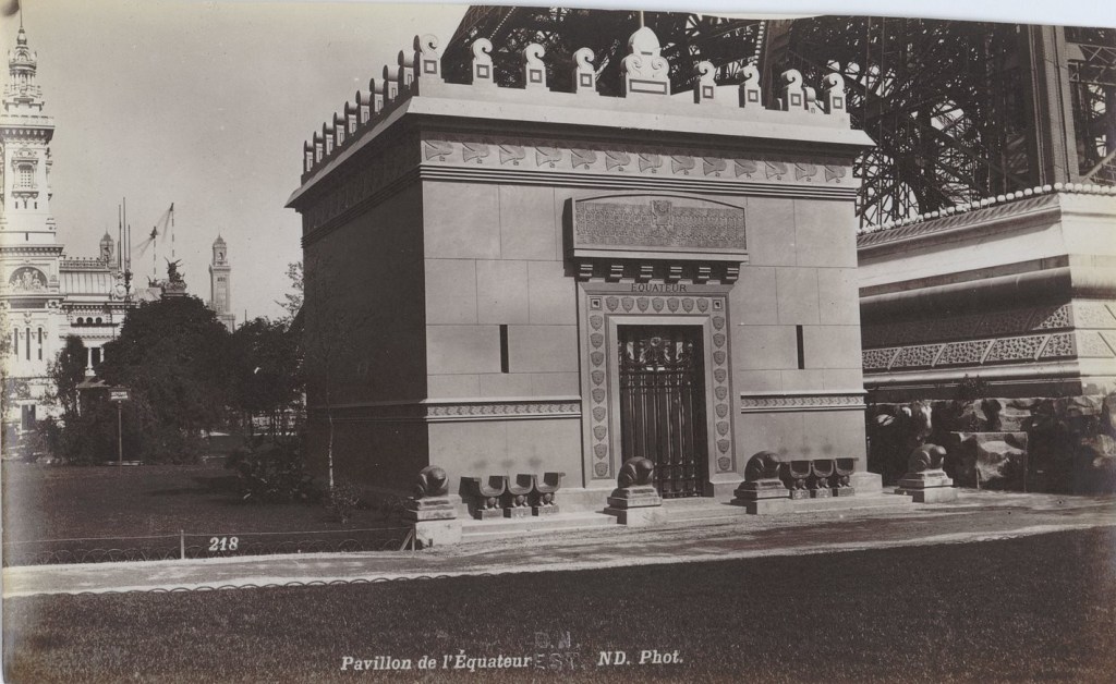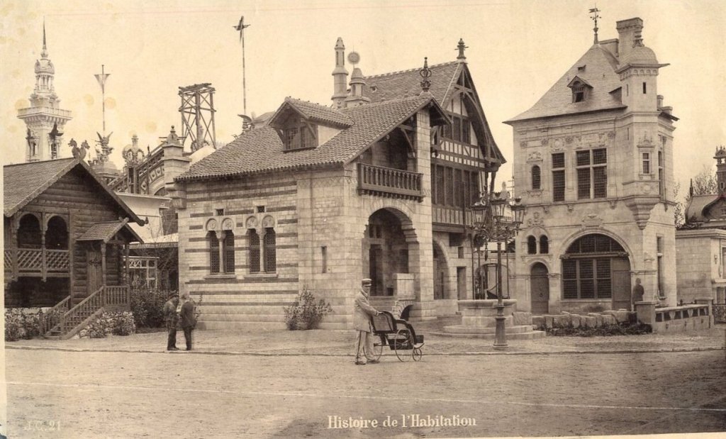 Sobre el quai d’Orsay y a ambos lados de la Torre Eiffel se instaló una serie de 44 construcciones diseñadas por el arquitecto Charles Garnier, creador de la Ópera de París, que detallaban el progreso de la habitación humana desde sus orígenes. Fotografías de las que estaban a la derecha de la torre permiten ver detrás partes del Pabellón.