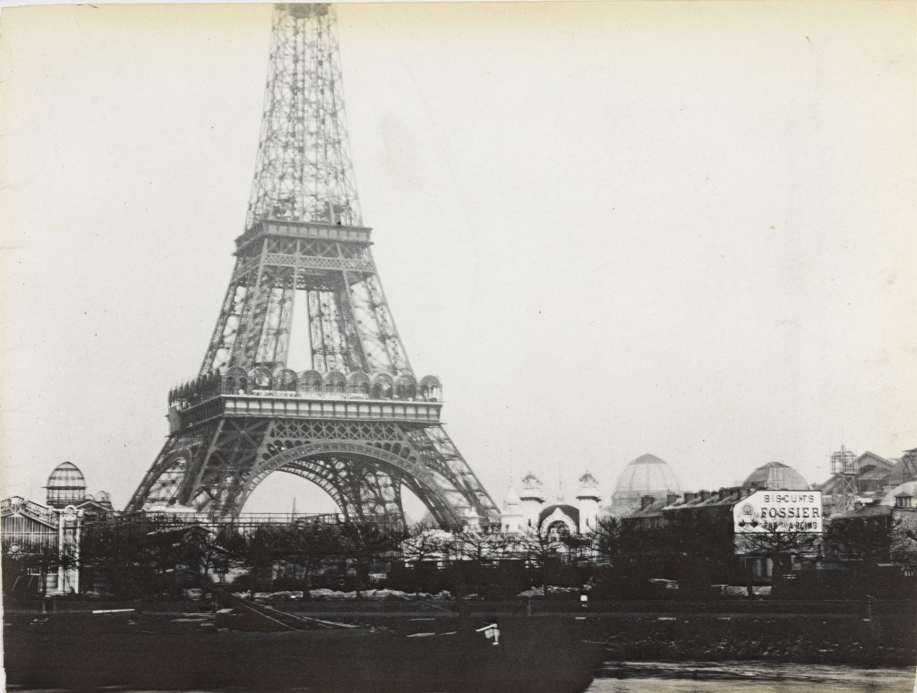 «Vue de la tour Eiffel en construction lors de l’Exposition universelle de 1889, Paris «. Photographie d’Hippolyte Blancard (1843-1924). Paris, musée Carnavalet.