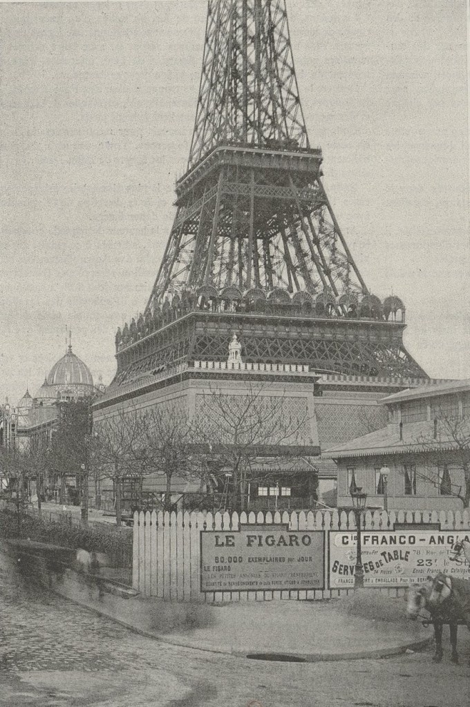 En varias publicaciones, como en la portada de la edición del 19 de julio de 1889 del Bulletin Officiel de l’Exposition Universelle de 1889, aparece un grabado de una imagen del mismo lateral de la primera fotografía, desde un punto algo más retirado.